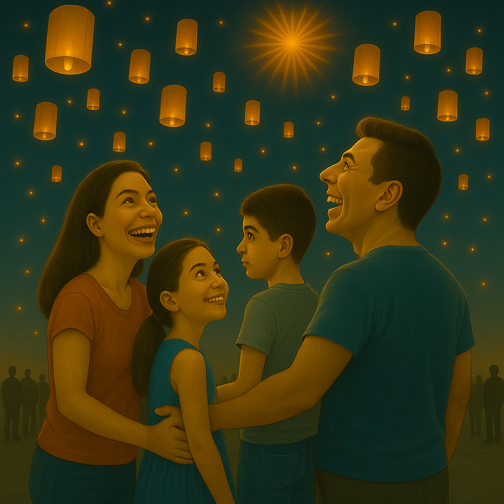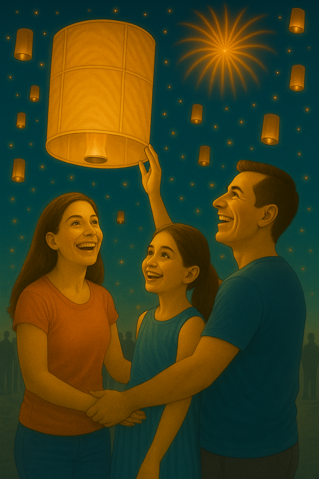 Die Laternen-Show beginnt nach Sonnenuntergang für maximale Sichtbarkeit und Wirkung.